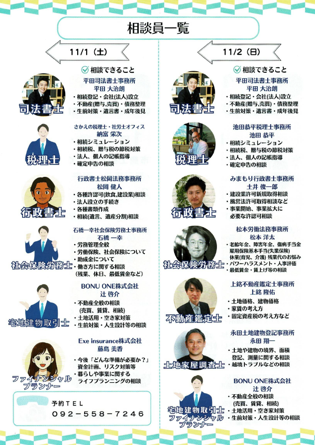 今回は、私を含め、司法書士、税理士、行政書士、社労士、不動産鑑定士、土地家屋調査士、宅建士、FPといった、いろんな分野の専門家が勢ぞろい。