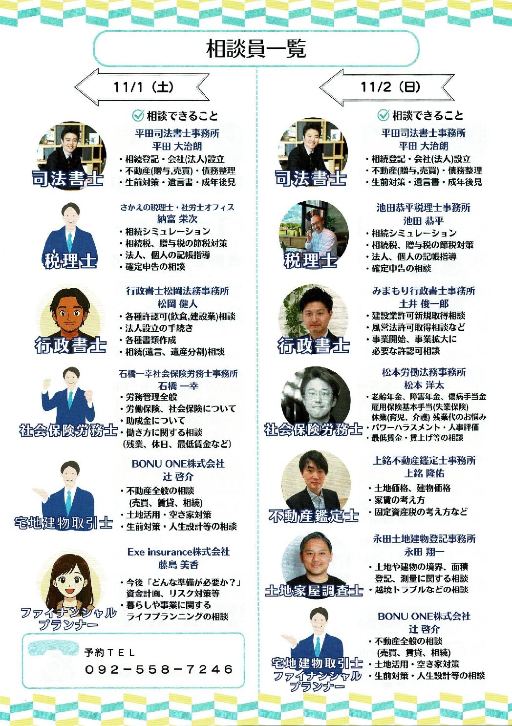 今回は、私を含め、司法書士、税理士、行政書士、社労士、不動産鑑定士、土地家屋調査士、宅建士、FPといった、いろんな分野の専門家が勢ぞろい。