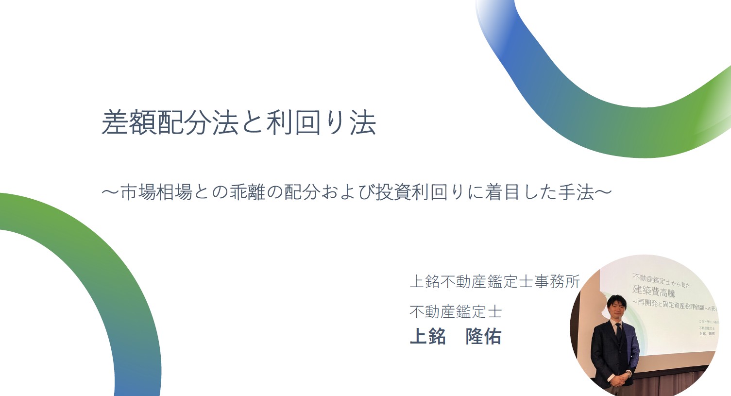 こんにちは、不動産鑑定士の上銘(じょうめい)です。